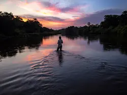 This is one of the best camp arrivals in Africa. From Mboko Camp you start with a safari kayak down the Lekoli River. At the entrance to Lango Baï the kayaks were pulled up on the river bank and a wonderful walk to camp began. They watched flocks of green pigeons coming to roost, forest buffalo grazing and were lucky enough to encounter and bongo and forest elephant as they waded through the water up the baï.